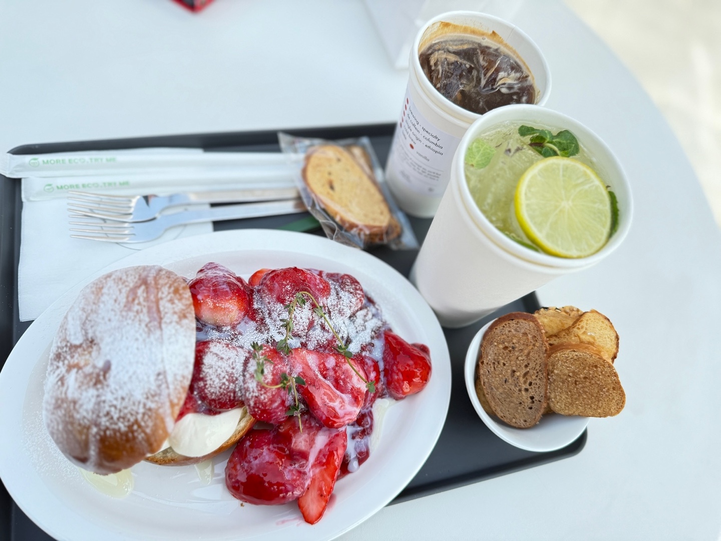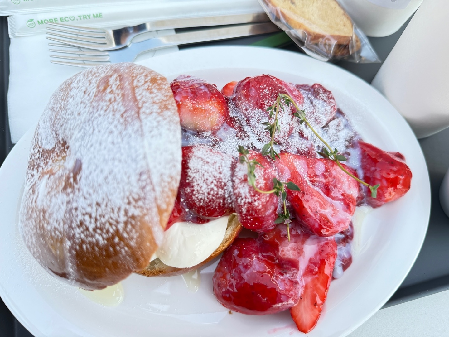 직접 만든 특제 생딸기 소스와 크림이 들어가 있는데, 새콤달콤하면서도 부드러워서 진짜 맛있었어요.