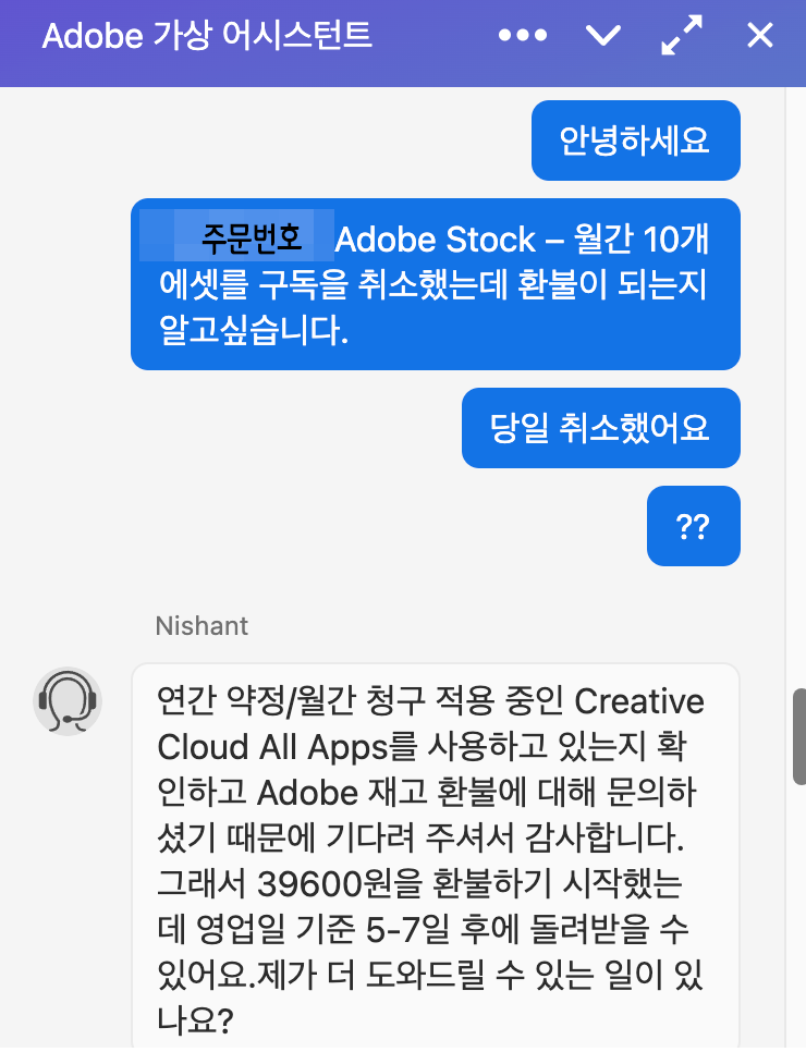 주문번호랑 ‘Adobe Stock – 월간 10개 에셋’ 구독이라 말했더니…